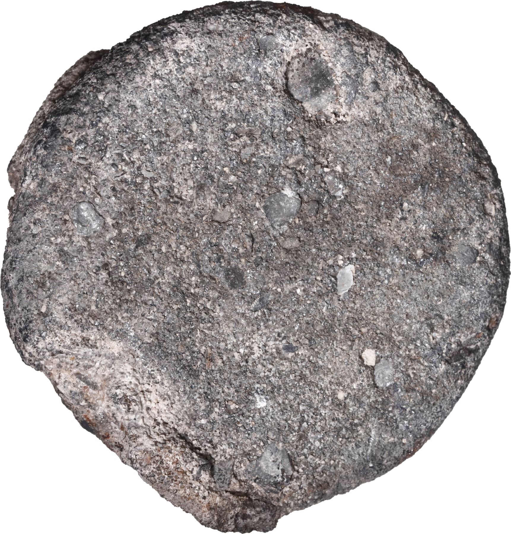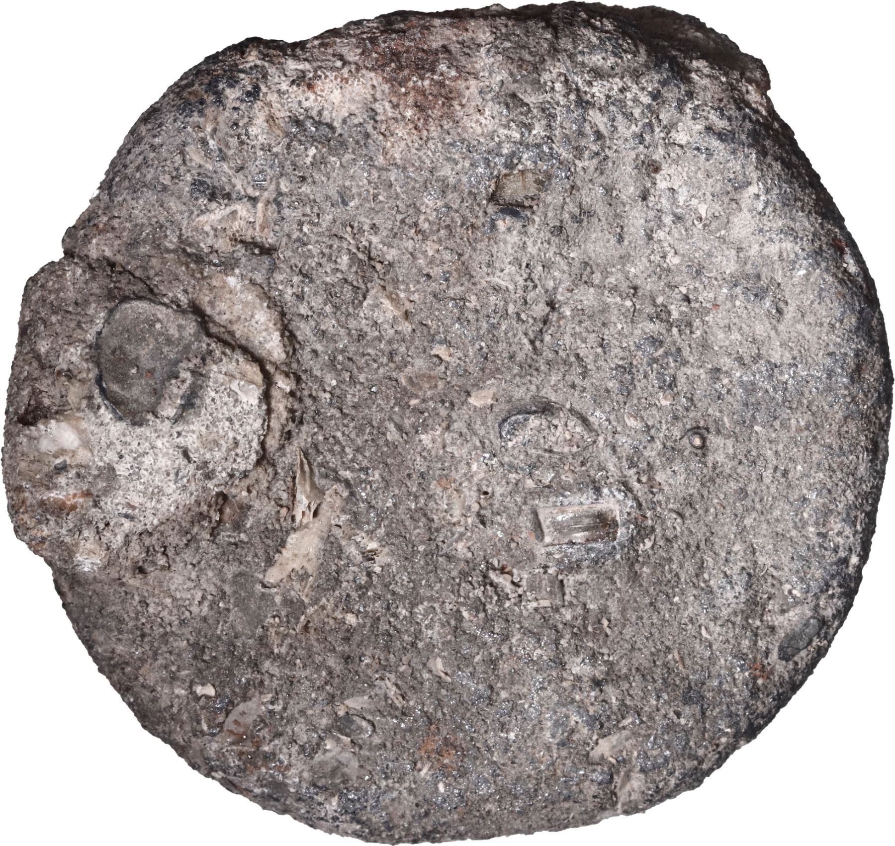 NETHERLANDS, mint uncertain, ducatoon "biscuit" (encrusted as found). 59.53 grams total. Perfectly round and thickly cocooned in gray encrustation with some whitish debris. With original (generic) certificate from the salvors. Recovered from: Vliegenthart, sunk in 1735 off Zeeland, Netherlands