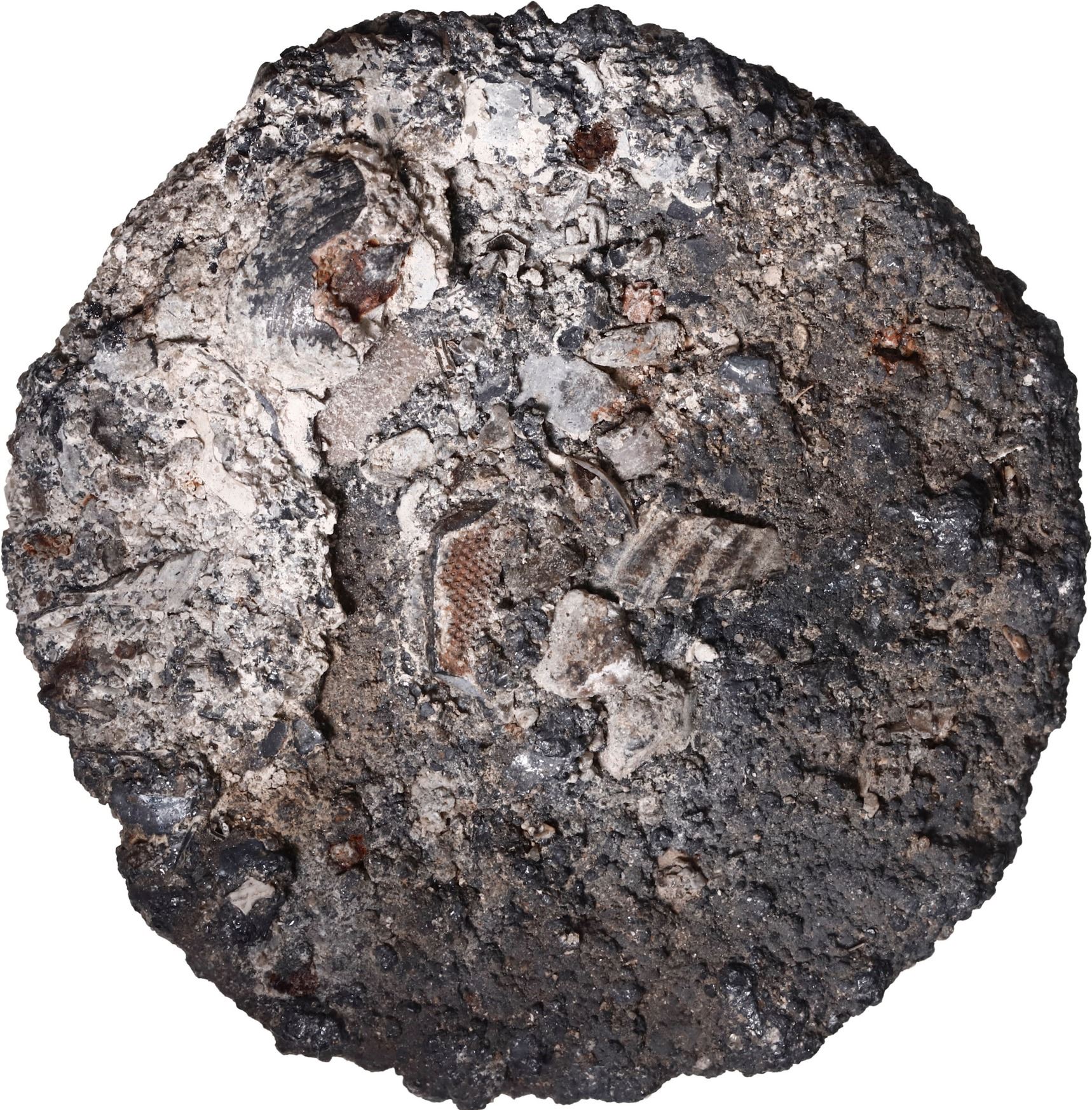 NETHERLANDS, mint uncertain, ducatoon "biscuit" (encrusted as found). 44.13 grams total. Neat cocoon with whitish encrustation on one side and the other with lots of shell bits and knobby texture on typically gray-colored base. With original (generic) certificate from the salvors. Recovered from: Vliegenthart, sunk in 1735 off Zeeland, Netherlands