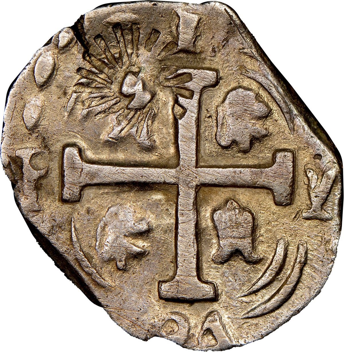 NICARAGUA, León, 1 real, liberty cap countermark (1824-25) on a Tegucigalpa, Honduras, provisional "imitation cob" 1 real, 1824-PMPY, retrograde lions, very rare, NGC XF 45, c/s XF standard (Richard Stuart Collection Label), finest known in NGC census. Jara-pp. 33-34; KM-unl. 3.14 grams. Full and clear countermark on cross side of well-struck host (oblong flan) with 100% full cross and pillars including two dates, all with lovely golden toning over luster, clearly the finest known of a very rare type that has fetched well into five figures in the past, additionally important for its pedigree to the Richard Stuart Collection that was dispersed a decade ago, hence now is a rare second chance to acquire such a trophy from this prestigious collection. Pedigreed to the Richard Stuart Collection.