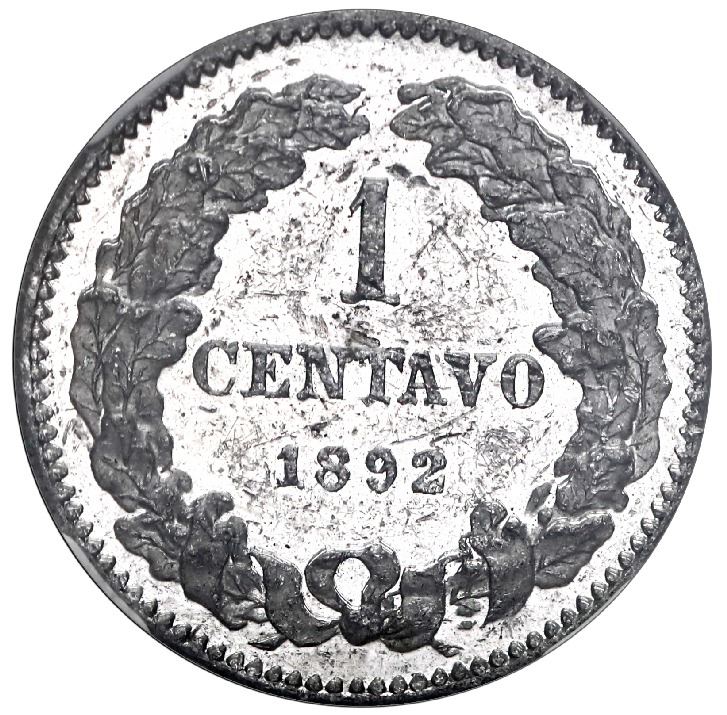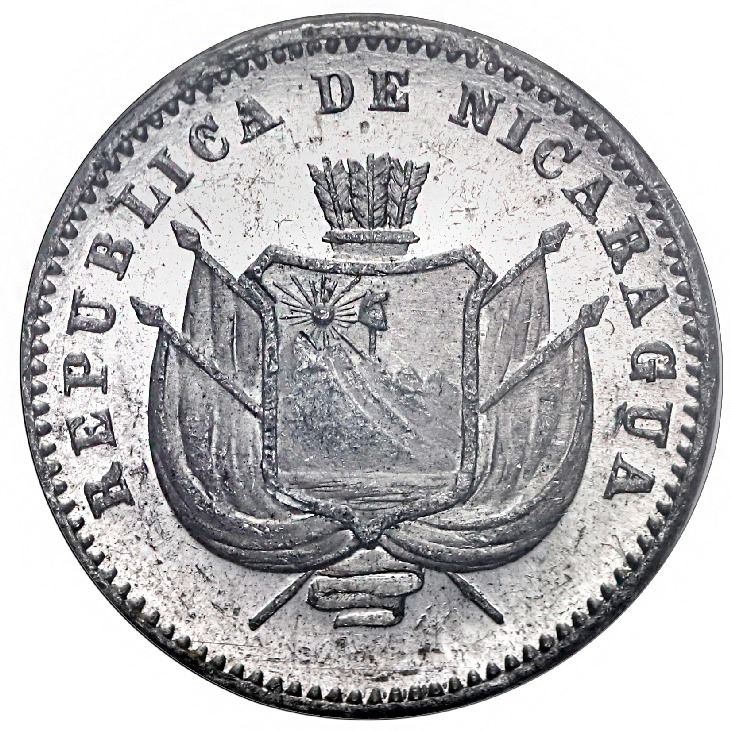NICARAGUA, aluminum piefort specimen 1 centavo, 1892, plain edge, NGC SP 61. KM-P6. Mirror luster and frosty detail as proof, just some scattered marks in fields, second highest grade in NGC census behind a pair that are rated MS 61+star (but note that NGC does not specify the design, which could be a different type with UN CENTAVO and date on reverse, the present coin showing a more refined 1 CENTAVO and date within wreath.