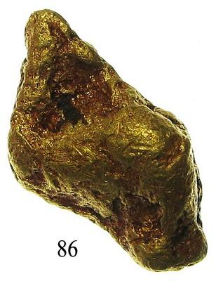 Natural gold nugget from the Arab/Indian trade (ca. 1200 AD). 7.3 grams, roughly ¾" x ½" x ¼". Typically irregular nugget, very solid and high-grade, with lots of reddish clay in crevices. From an unidentified 12th/13th-century Arab/Moorish dhow sunk in the Mozambique Channel, east of Africa, with certificate from the diver.