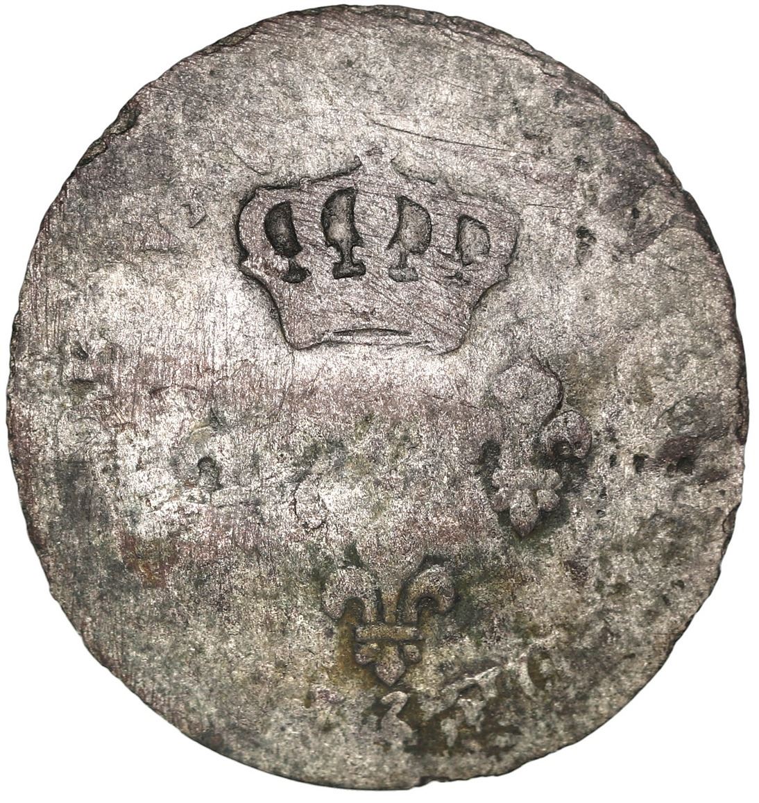 Nevis, black dogg (three halfpence), rectangular countermark NEVIS on a genuine Cayenne 2 sous 1782-A, rare. Prd-5; KM-1. 1.57 grams. Choice full XF countermark above 1782 date and A mintmark on genuine but well-worn host (XRF tested at 62.98% silver and 36.12% copper), also with CAYENNE mostly visible, a rare and desirable issue that commands a premium for the host date (most seen are 1789, if visible at all), the formerly French island of Nevis somewhat famous for being the birthplace of Alexander Hamilton.