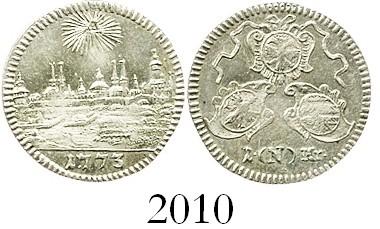 Nurnberg, Germany, billon 1 kreuzer (4 pfennig), 1773-N. KM-367. 0.8 gram. Prooflike Mint State, very lustrous and sharply detailed.