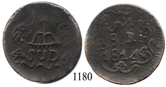 Oaxaca (SUD/Morelos), Mexico (War for Independence), copper 8 reales, 1814. KM-234. 24.5 grams. Choice VF+ for the issue, darkly toned, dies unlisted in Guttag.