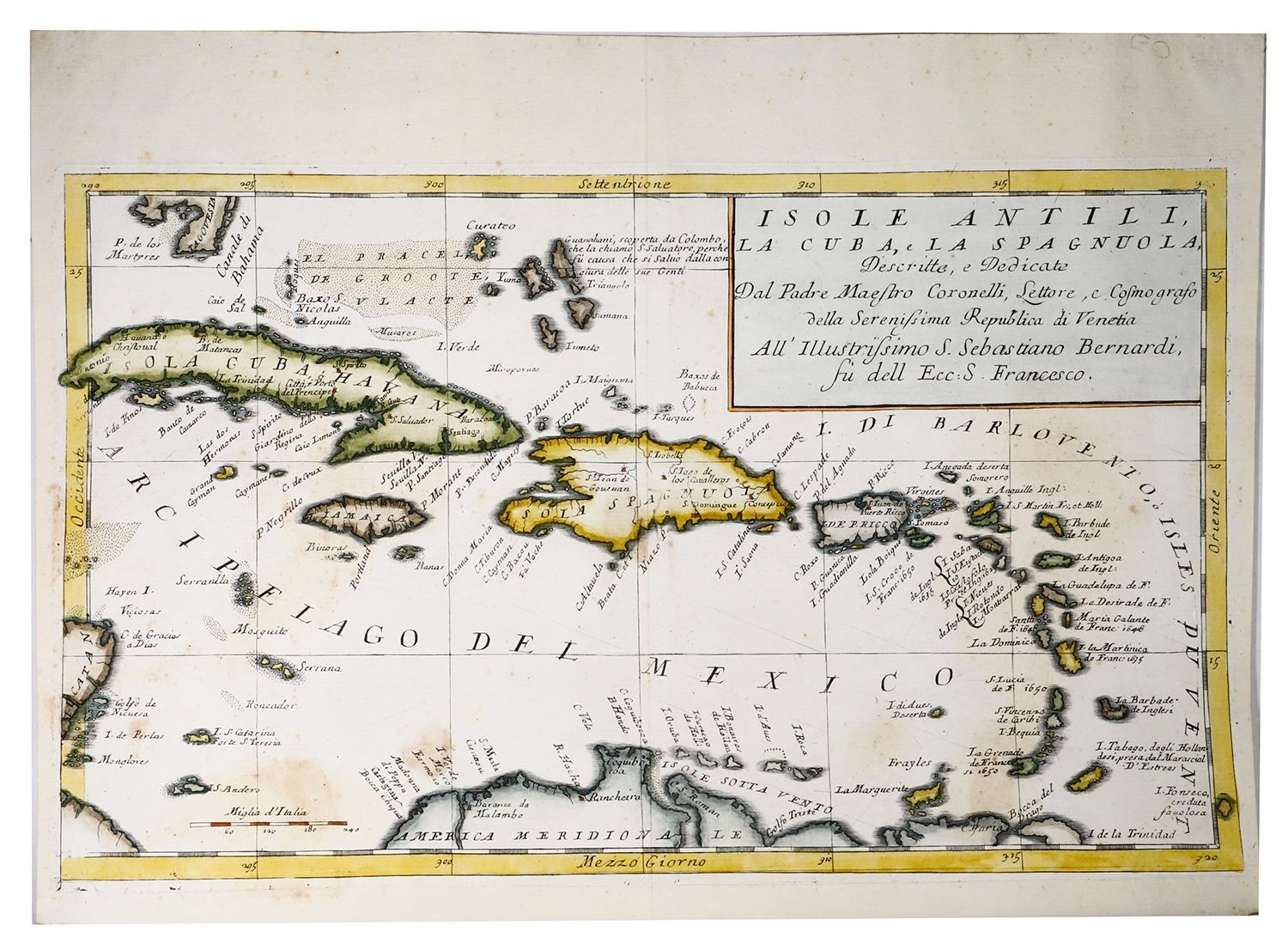 Original (late 1600s) large map of the Greater Antilles by Vincenzo Maria Coronelli entitled [x=#822