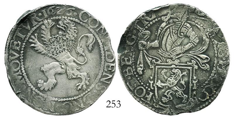Overijssel, United Netherlands, "lion" daalder, 1626, rare and choice. KM-unlisted. 26.7 grams. Beautifully well-detailed lion and knight, lustrous and high grade, no corrosion but some dents and weakness around edge, clear date (rare and unlisted), attractively toned, one of the best available. With salvagers' certificate #OR1. Recovered from: Campen, sunk in 1627 off the Isle of Wight, south of England