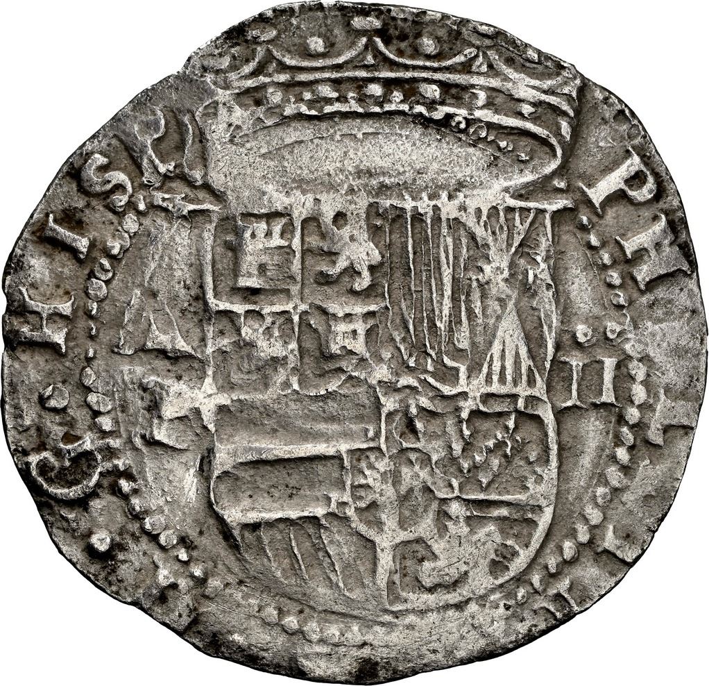 PANAMA, Panama City, cob 2 reales, Philip II, assayer oX outside of tressure on reverse, mintmark AP