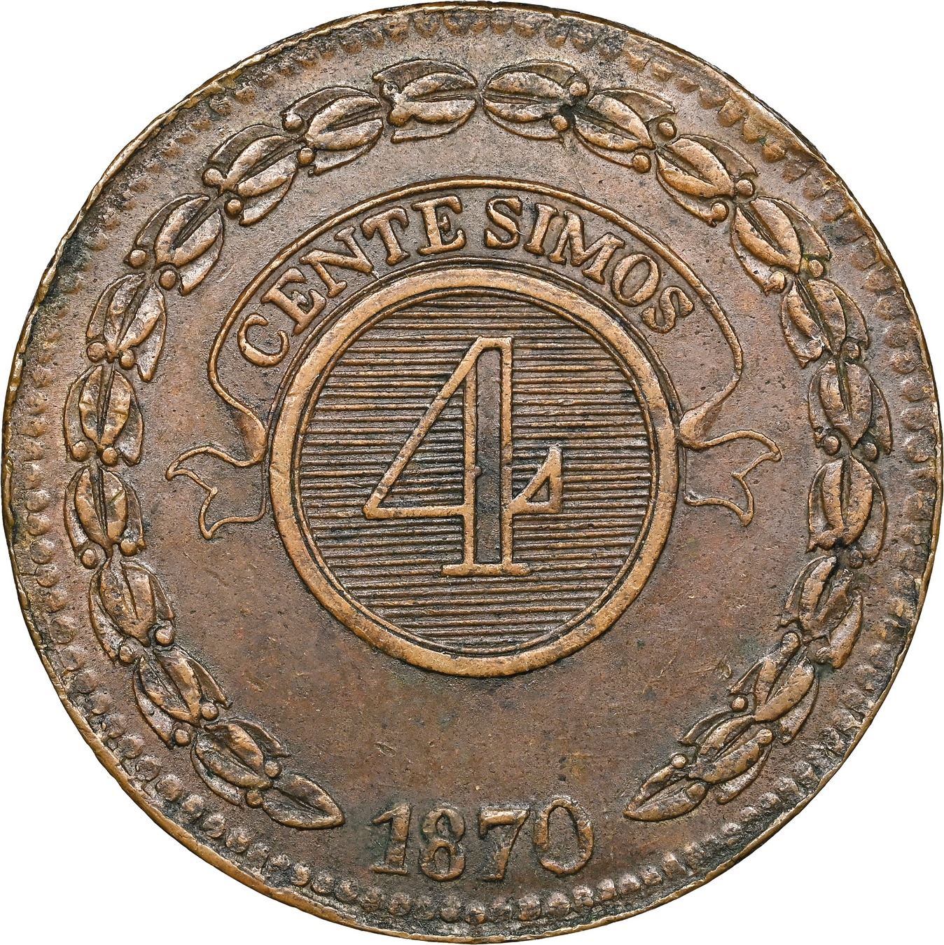PARAGUAY, Asunción, copper 4 centésimos, 1870, NGC AU 55 BN.