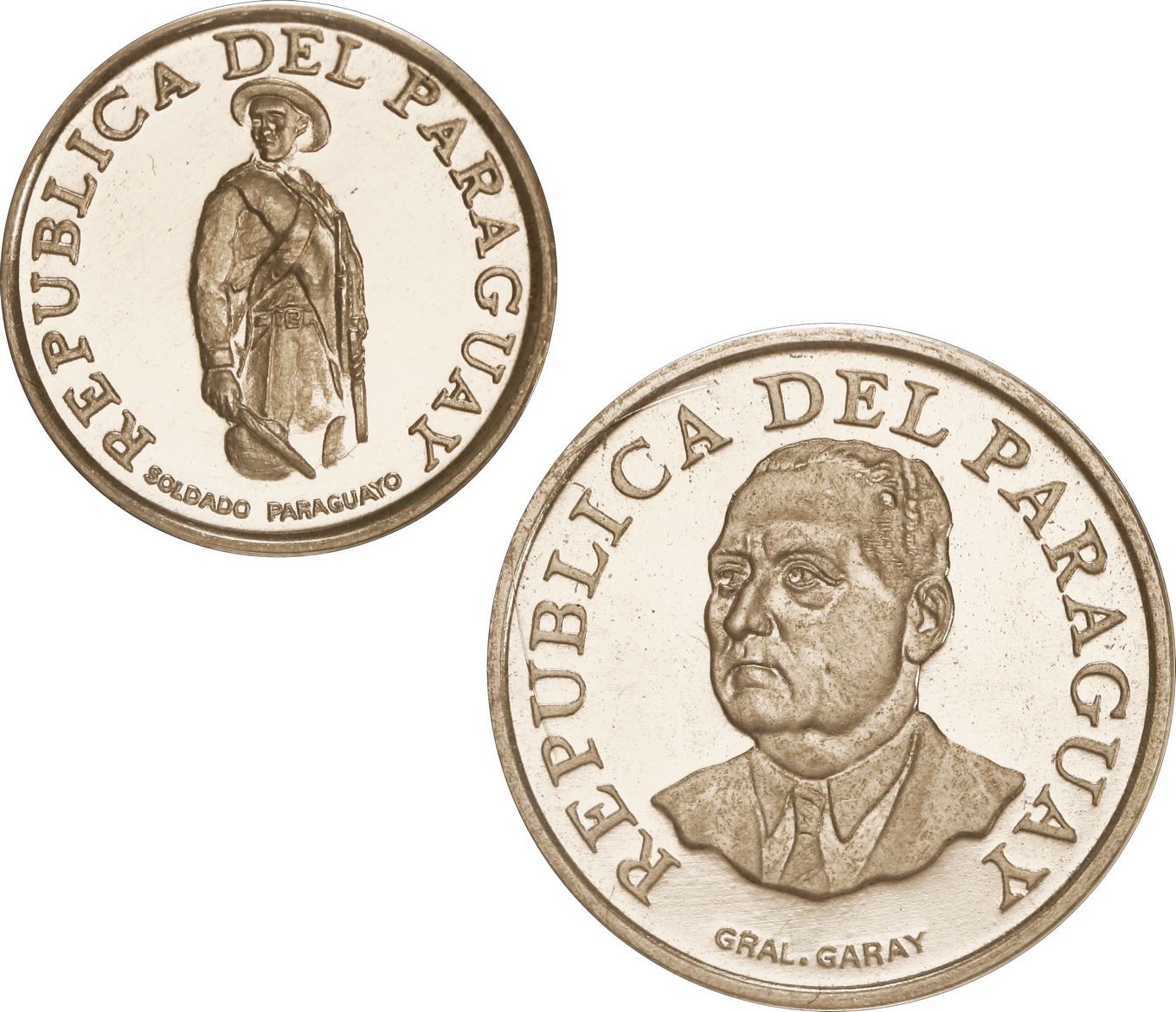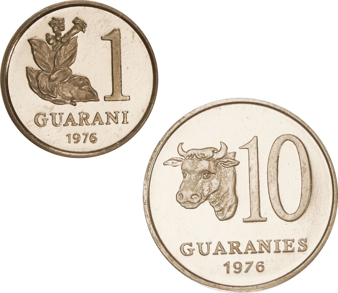 PARAGUAY, struck at the Casa da Moeda in Brazil, stainless steel proof 10 and 1 guaranies set, 1976,