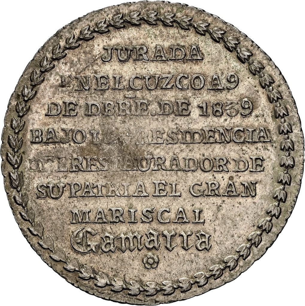 PERU, Cuzco, 2R-sized proclamation medal, 1839, new Constitution / Gamarra, NGC UNC details / cleane