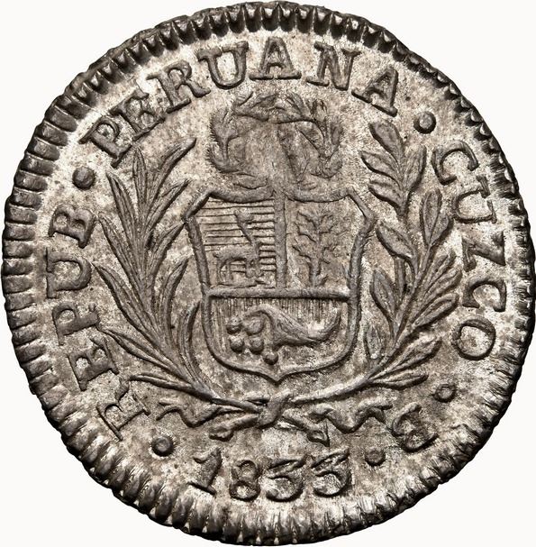 PERU, Cuzco, ½ real, 1833 B, NGC MS 63,  top pop,  ex-Carter, ex-O'Brien.