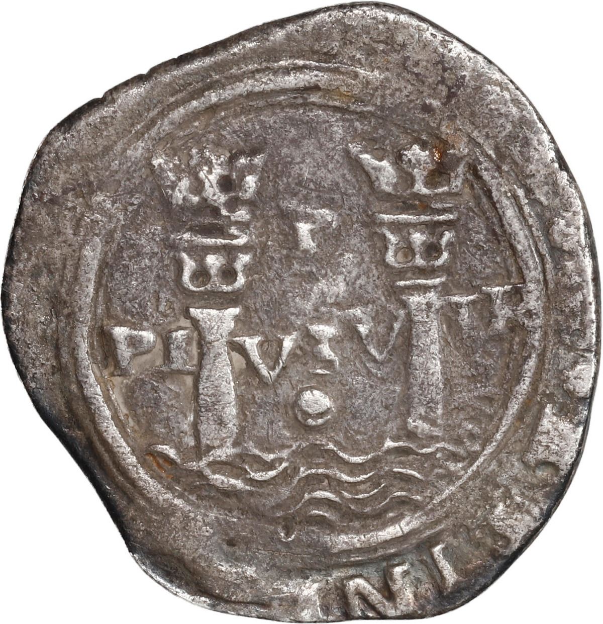 PERU, Lima, 1 real, Philip II, assayer R (Rincón) to left, legends uncertain, motto PL-VSV-TR above