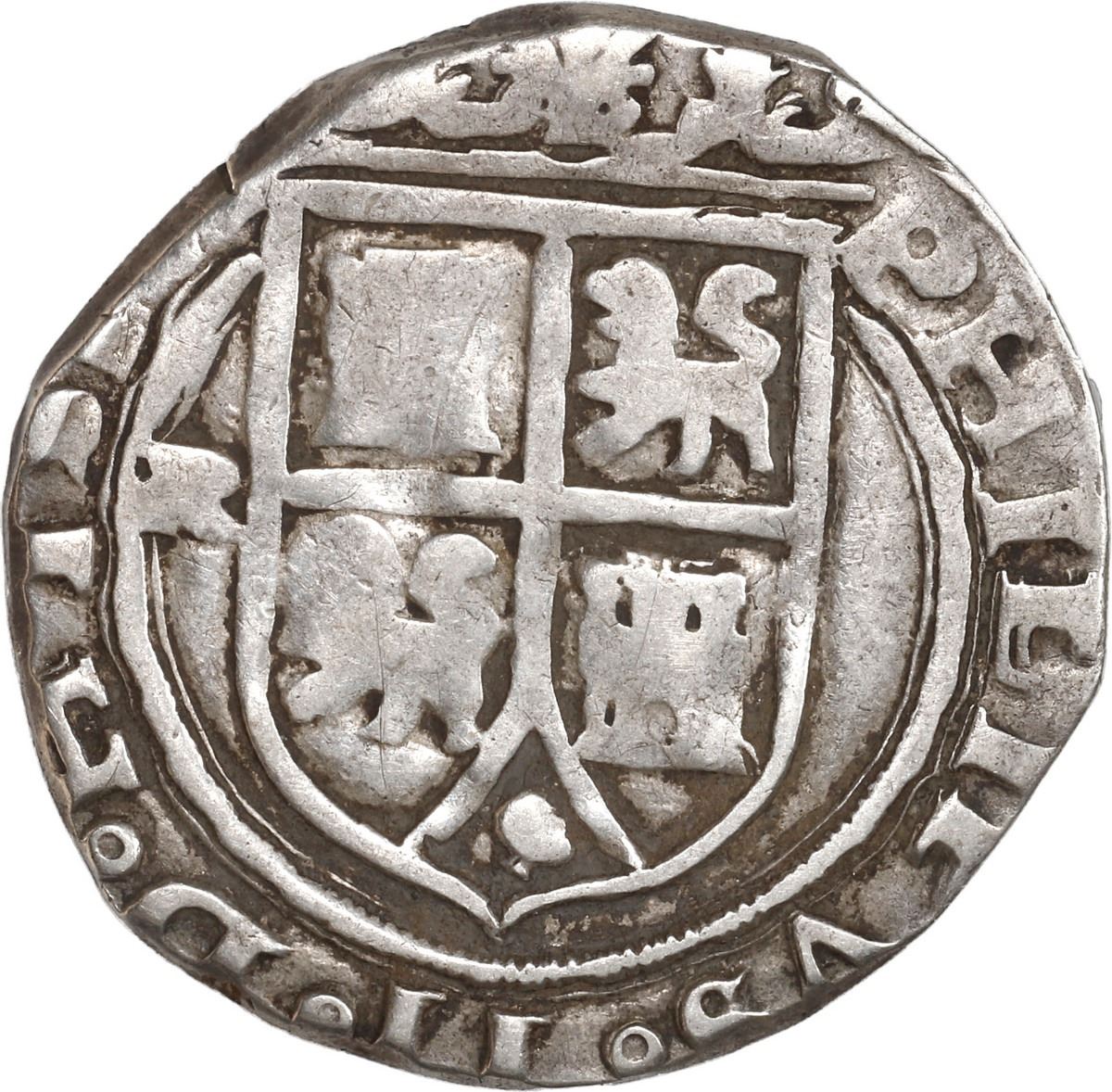 PERU, Lima, 2 reales, Philip II, assayer R (Rincón) to left, motto PL-VSV-L, legends HISPA / NIARVM. S-L1; KM-8; Cal-333. 6.52 grams. AVF with bold full details including most of legend due to contrasting sediment in crevices, two tiny test-cuts on edge.
