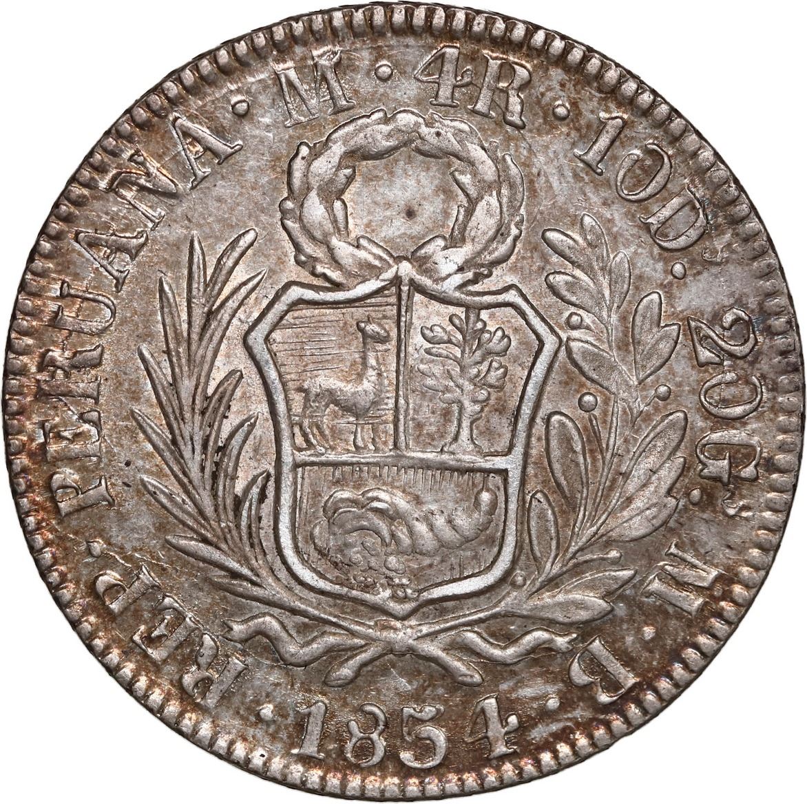 PERU, Lima, 4 reales, 1854 MB, NGC MS 61, ex-O'Brien.