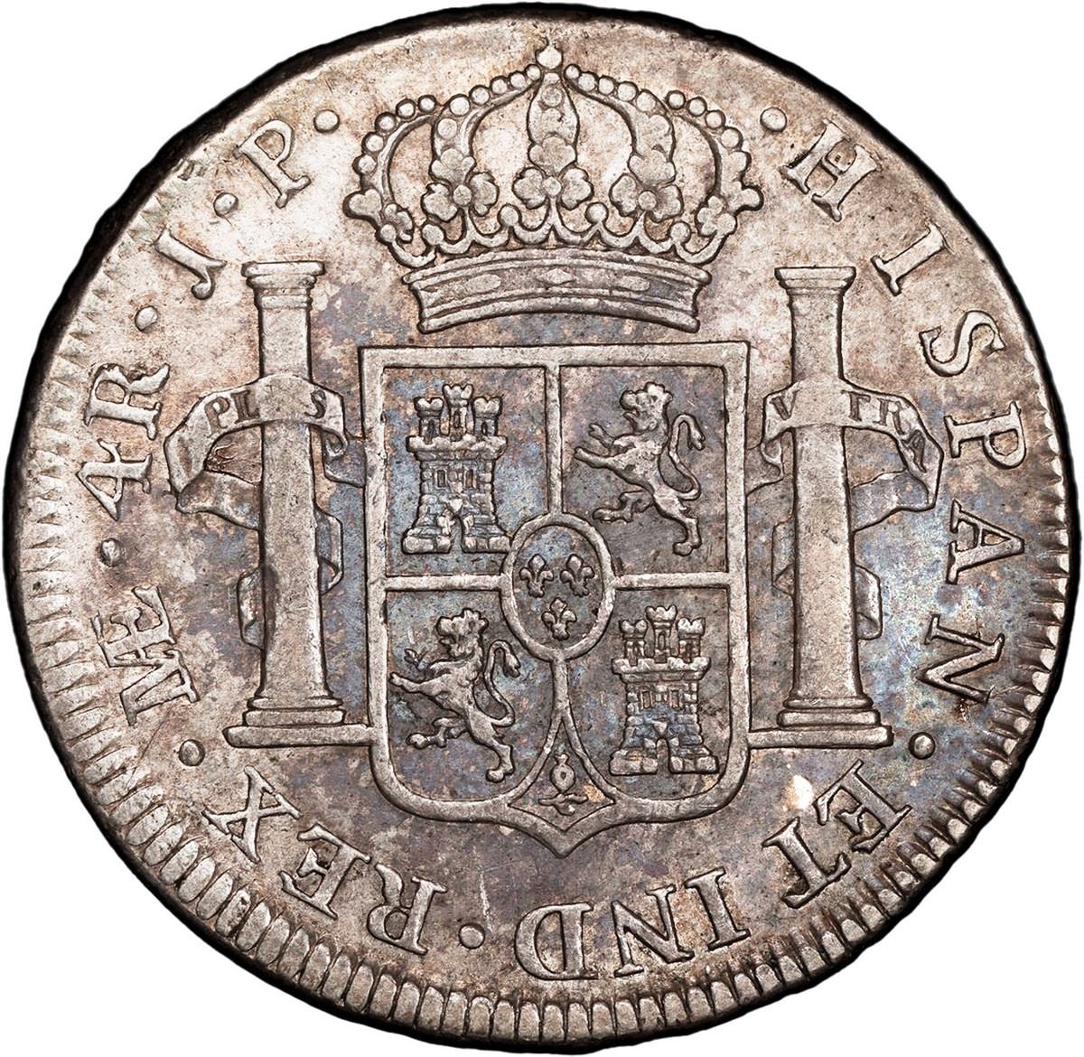 PERU, Lima, bust 4 reales, Ferdinand VII, 1816 JP, PCGS XF details / cleaned, ex-Pat Johnson. KM-116; Cal-1070. Boldly struck piece with some retain luster in its heavily toned surfaces, light wipe on the obverse fields, fairly difficult date and denomination. Pedigreed to the Pat Johnson Collection (stated on label).