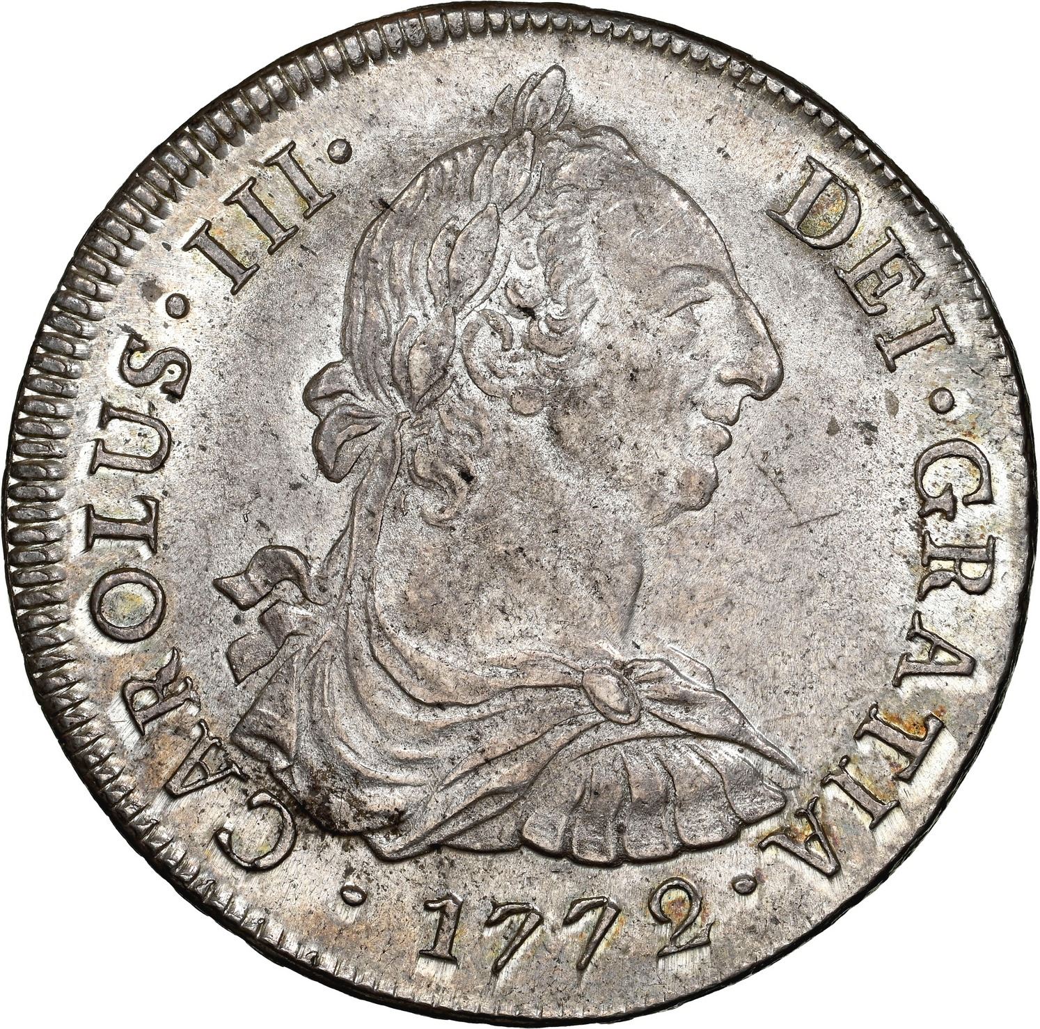 PERU, Lima, bust 8 reales, Charles III, 1772 JM, NGC MS 63, finest known in NGC census.