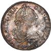 PERU, Lima, bust 8 reales, Charles III, 1786 MI, with chopmarks from circulation in Asia. KM-78a; Cal-1055. 27.00 grams. AU+ with strong luster (especially on reverse) splashed with vivid rainbow toning, one star-shaped chop in field and smaller chop in O of king's name on obverse, rare grade for a chopmarked piece.