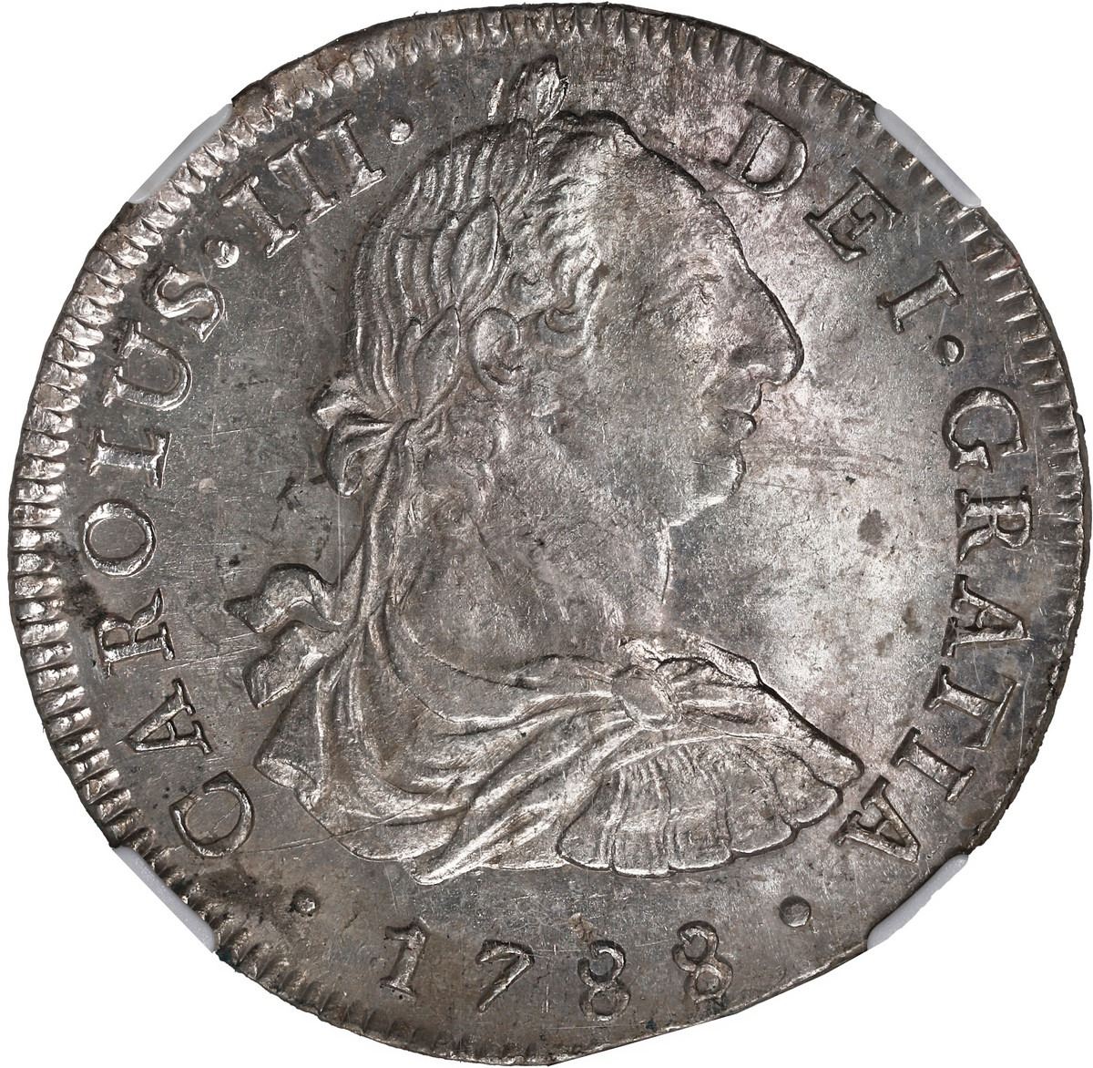PERU, Lima, bust 8 reales, Charles III, 1788 IJ, NGC MS 61.