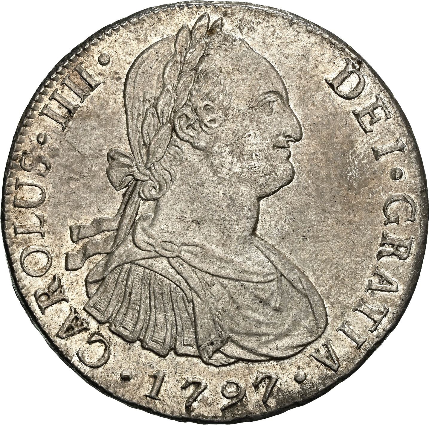 PERU, Lima, bust 8 reales, Charles IV, 1797 IJ, NGC MS 62.