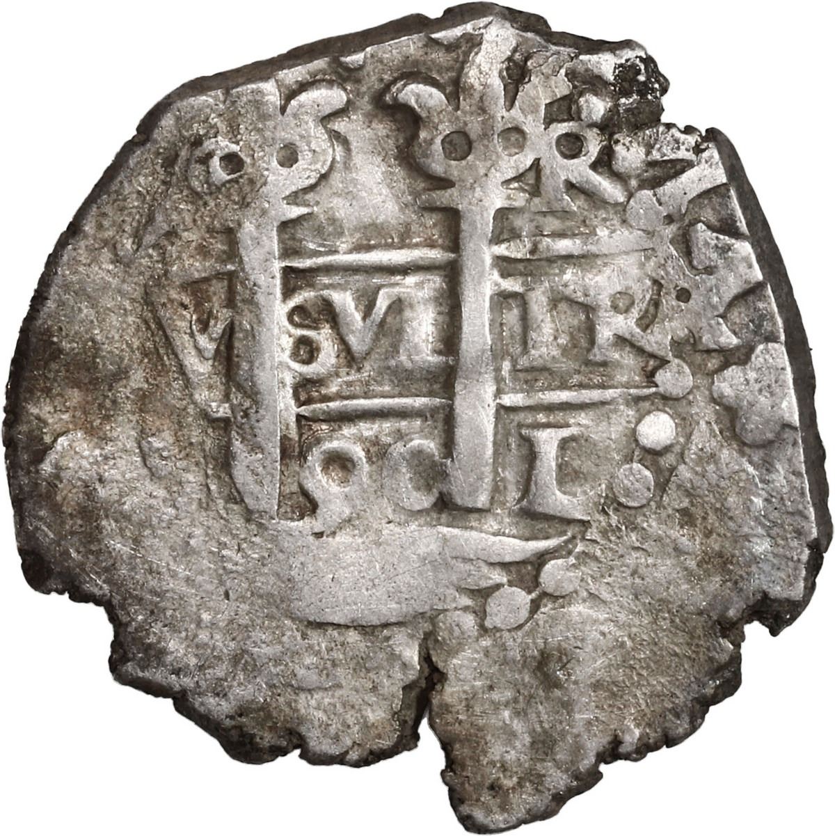 PERU, Lima, cob 1 real, 1690 R, ex-Ugaz. S-L9; KM-20; Cal-221. 3.67 grams. Nice XF with bold pillars and cross plus clear date and assayer, crude edges as is typical for this time period. Pedigreed to the Jorge Ugaz Collection.