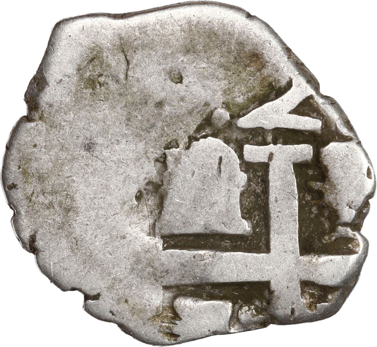 PERU, Lima, cob 1 real, 1750 (R), error with denomination 2 above cross, unique(?), ex-Ugaz. S-L23; KM-unl (42 for type); Cal-unl (Type 25). 3.02 grams. Off-center strike with lots of flatness to left of design on both sides, the pillars with clear denomination I and date 750 and the 1R-sized cross with clear denomination 2 (first and only example we have seen or heard of), lightly toned VG. Pedigreed to the Jorge Ugaz Collection.