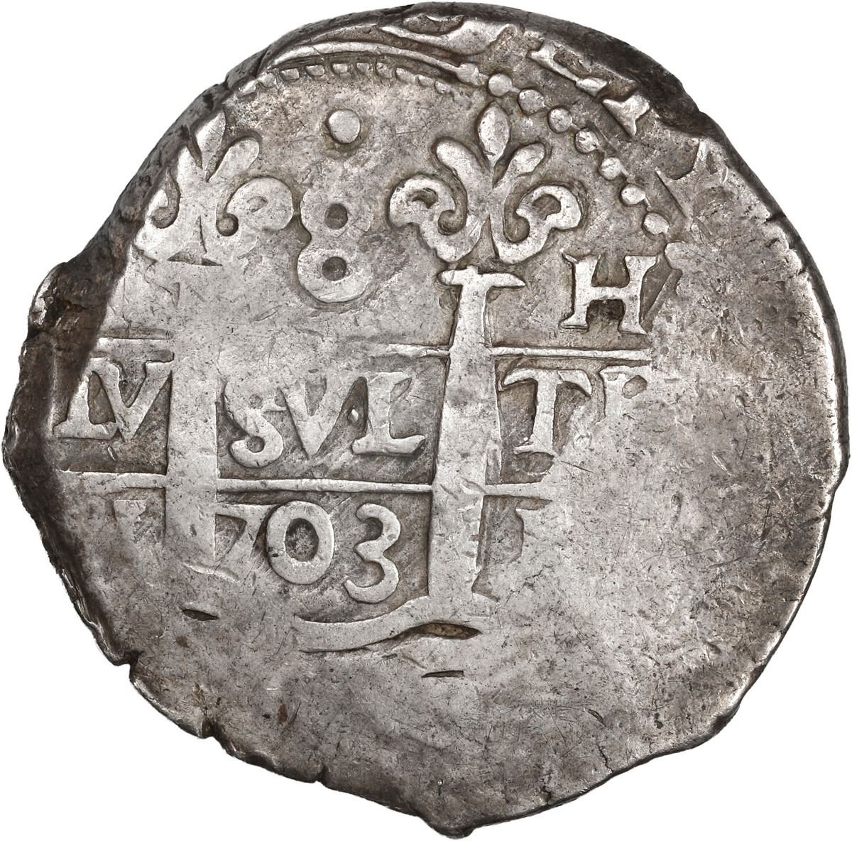 PERU, Lima, cob 8 reales, 1703 H, single dot at top, ex-Ugaz.