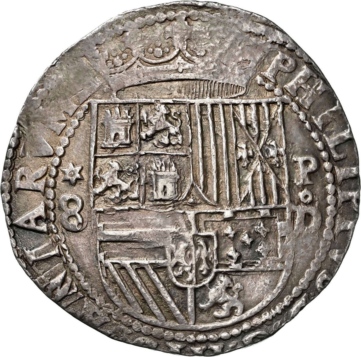 PERU, Lima, cob 8 reales, Philip II, assayer Diego de la Torre, *-8 (round top) to left, P-oD to rig
