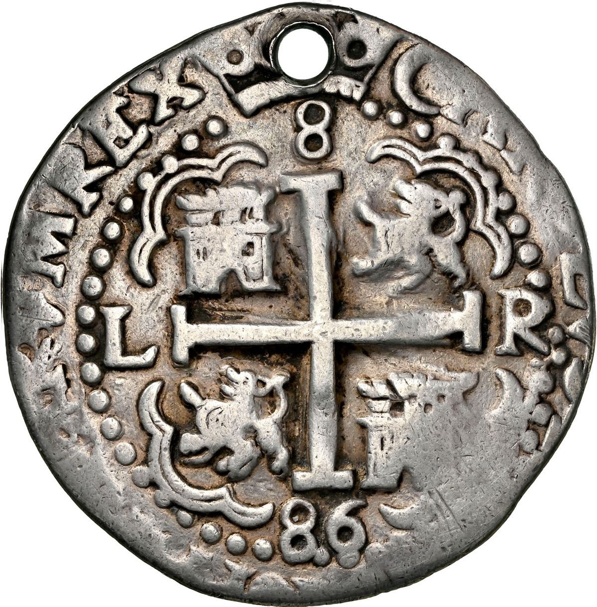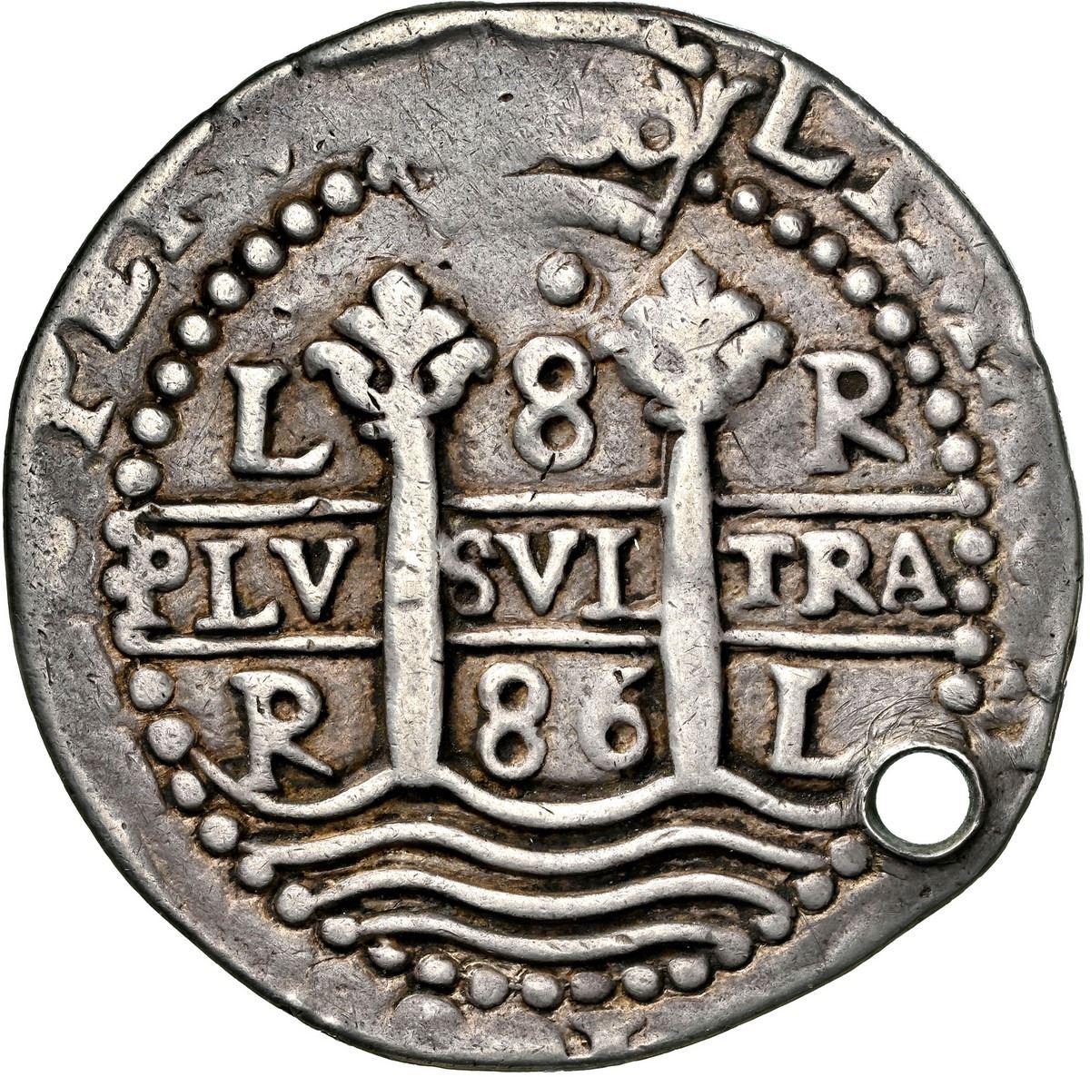 PERU, Lima, cob 8 reales Royal (galano), 1686 R, single dot at top, rare, NGC VF details / holed, ex