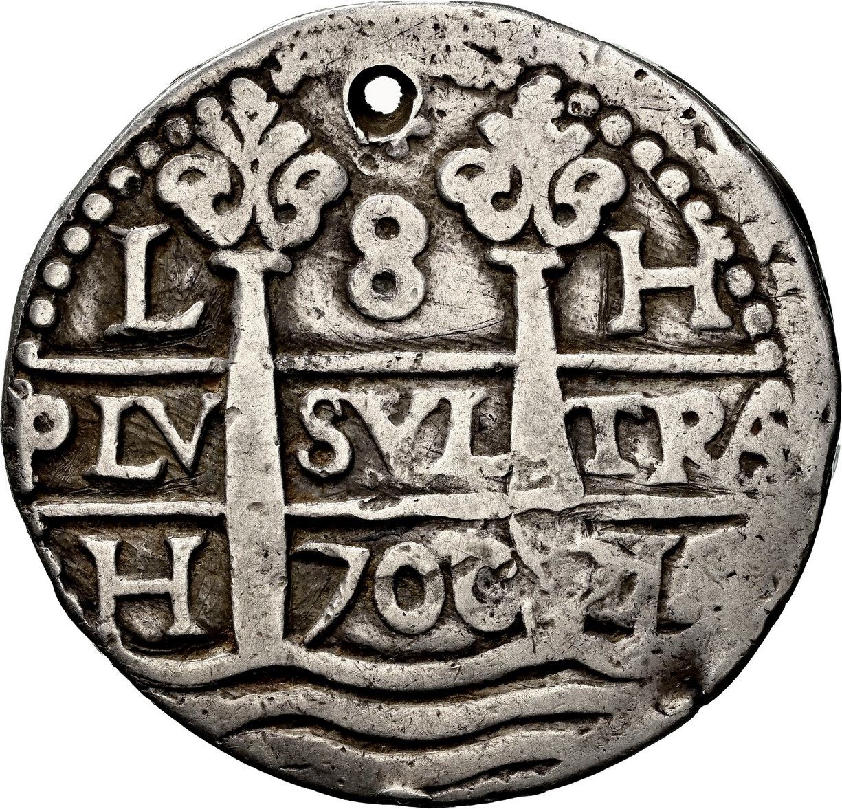 PERU, Lima, cob 8 reales Royal (galano), 1700 H, with Guatemala sun-over-mountains countermark (Type
