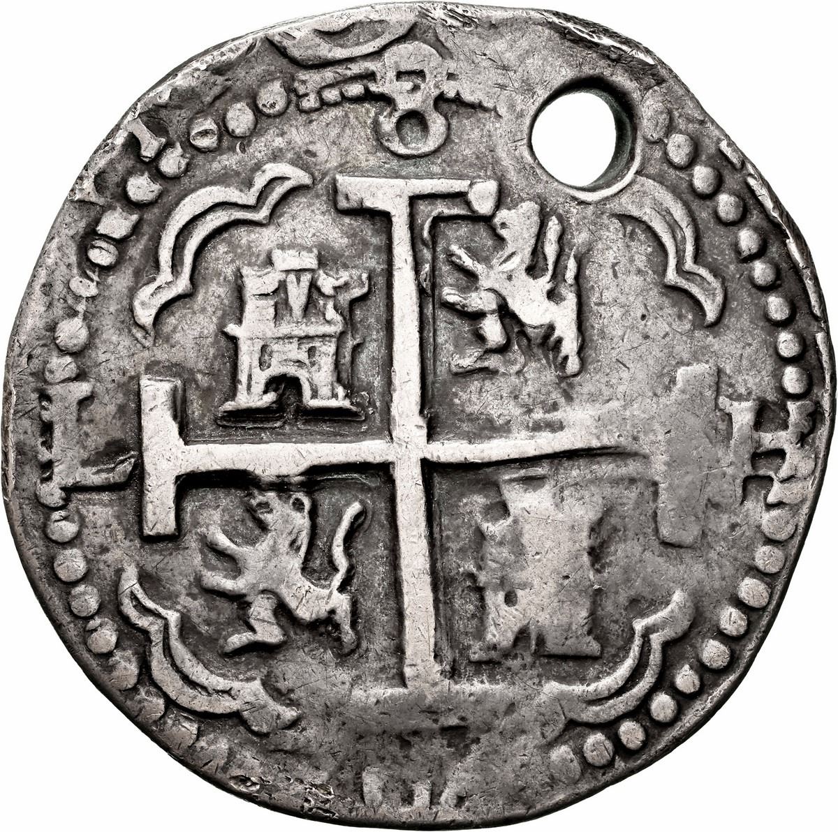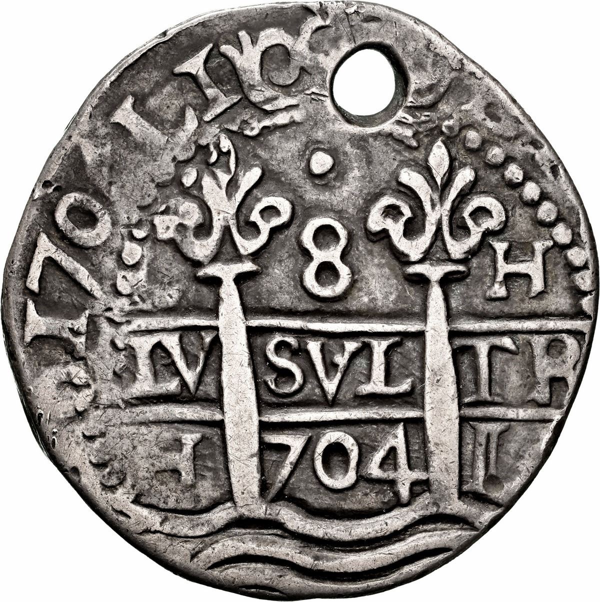 PERU, Lima, cob 8 reales Royal (galano), 1704 H, single dot at top, extremely rare, NGC VF details /