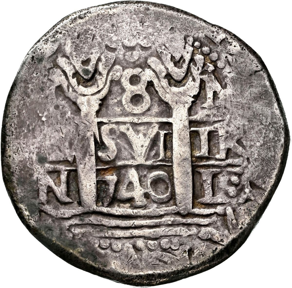 PERU, Lima, cob 8 reales (round flan), 1740, assayer N on pillars side and assayer V on cross side,