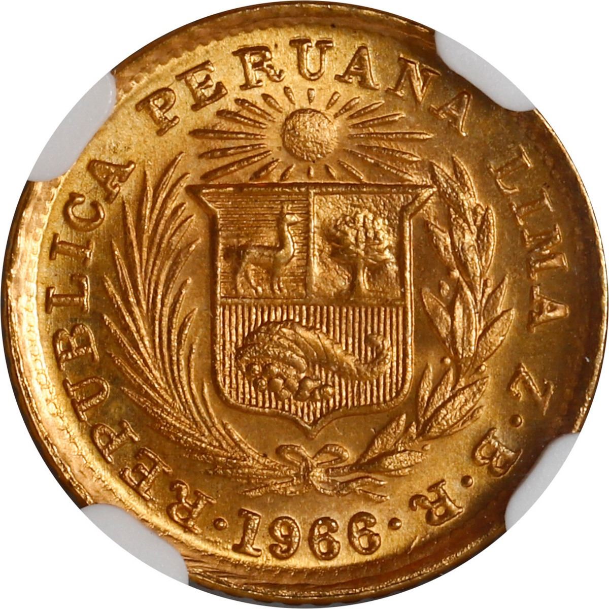 PERU, Lima, gold 1/5 libra, 1966 ZBR, NGC MS 68.