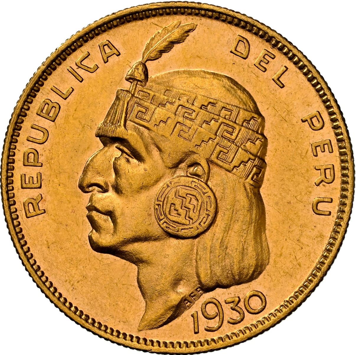 PERU, Lima, gold 50 soles "Inca," 1930, NGC MS 61, ex-Almenara.