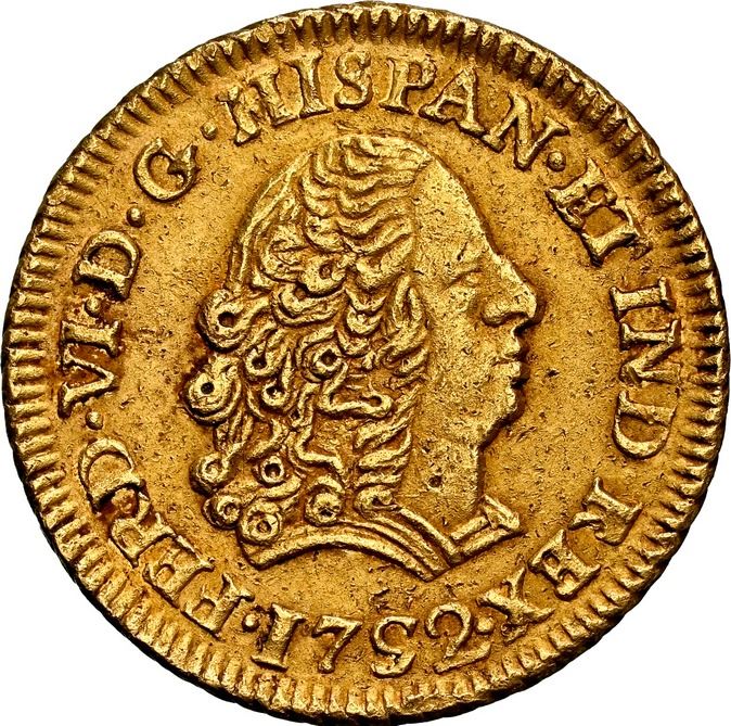 PERU, Lima, gold bust 1 escudo, Ferdinand VI, 1752 J, first bust, very rare, NGC AU details / saltwater damage, ex-Almenara. Cal-599; Fr-19; KM-56.1. Sharply detailed strike in technically UNC grade (at least in our opinion) but with tiny marks on non-lustrous and slightly grainy surfaces, still quite a strong example from this rare three-year type that Friedberg just calls "rare" without values. Pedigreed to the Almenara Collection (stated on label).