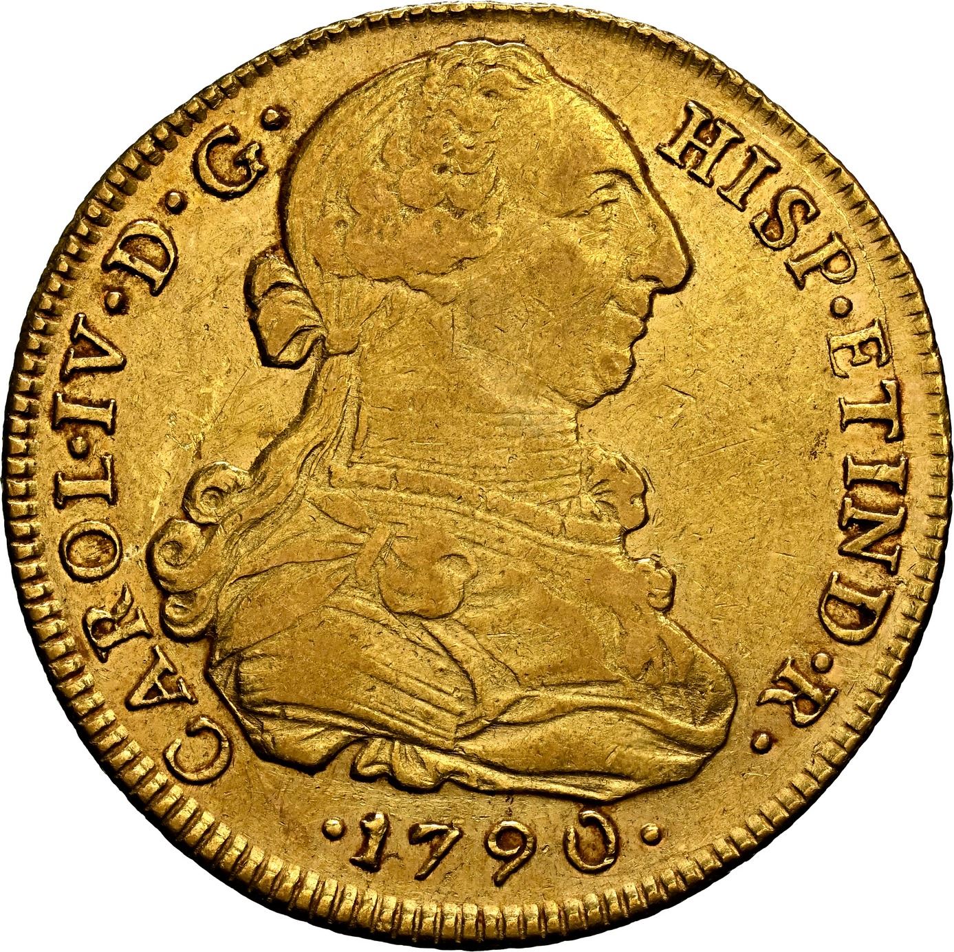PERU, Lima, gold bust 8 escudos, Charles IV transitional (bust of Charles III, ordinal IV), 1790 IJ,