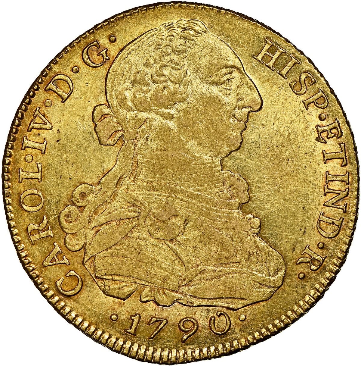 PERU, Lima, gold bust 8 escudos, Charles IV transitional (bust of Charles III, ordinal IV), 1790 IJ,