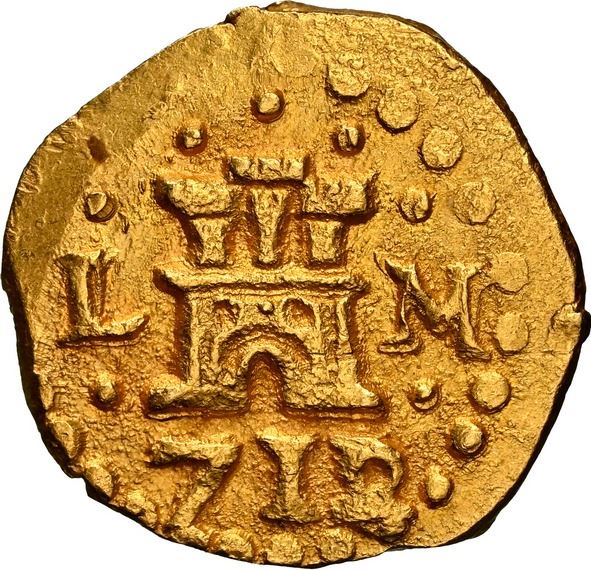 PERU, Lima, gold cob 1 escudo, 1712/1/0 M, very rare, NGC MS 66 (1715 Fleet Shipwreck Label), finest and only example in NGC census, ex-1715 Fleet, ex-Ubilla-Echevez, ex-Almenara. S-L28; Cal-1668; Fr-10; KM-unl (35 for type). 3.24 grams. Bold and perfectly centered castle side with clear 2/1 overdate but the 1/0 less obvious (die-match with a 1711/0 in the State of Florida Collection, coin number 1678, which is curiously NOT the same 1711/0 die as for the previous lot), the off-center cross also full but slightly crude, both sides struck from rusty dies, lustrous and rich gold in color. From the 1715 Fleet, with photo-certificate, pedigreed to the Real Eight Co. consignment sold as the Ubilla-Echevez Collection (stated on label) in the Christensen auction of October 1964 (lot 163), and pedigreed to the Almenara Collection and to the Baldwin's auction of October 2000 (lot 404), also plated in Frank Allen's 1967 The Numismatist article "Previously Unknown Spanish Gold Coins."