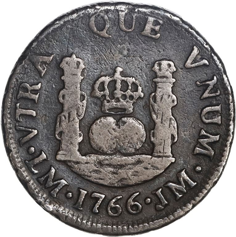 PERU, Lima, pillar 1 real, Charles III, 1766 JM, extremely rare, ex-O'Brien.