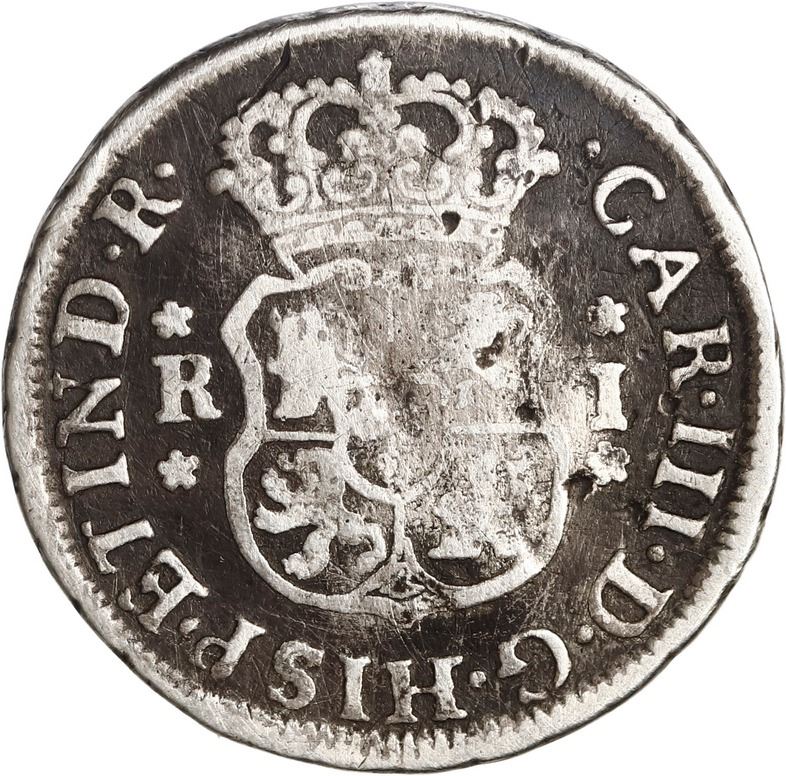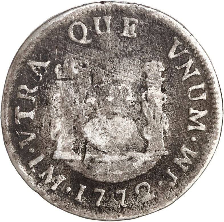 PERU, Lima, pillar 1 real, Charles III, 1772 JM, very rare, ex-O'Brien.