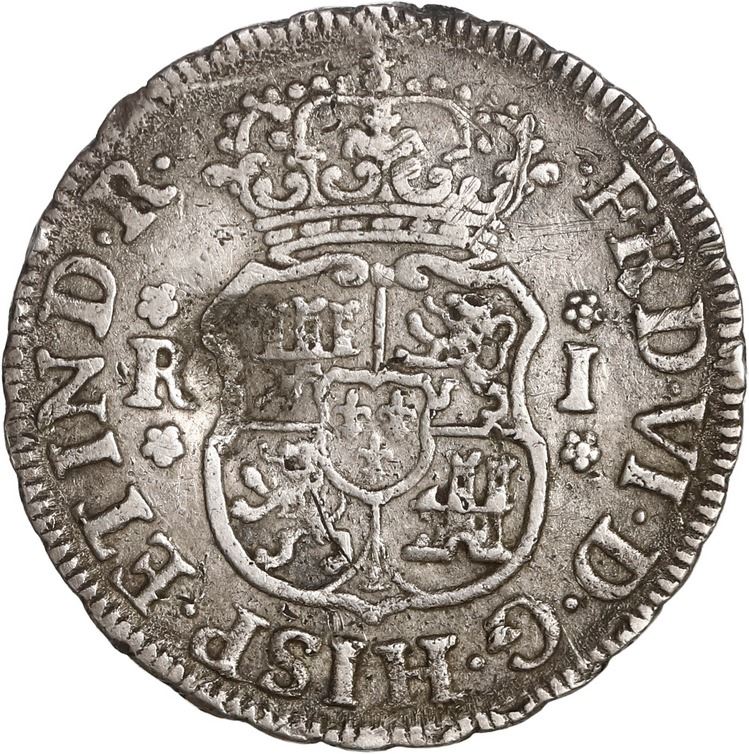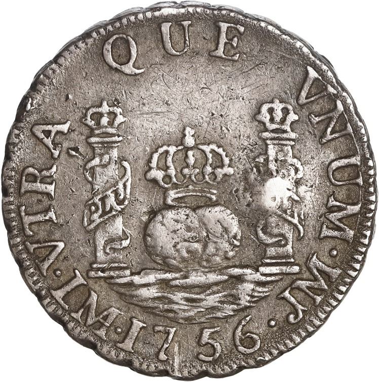 PERU, Lima, pillar 1 real, Ferdinand VI, 1756 JM, mintmark not dotted, ex-O'Brien.