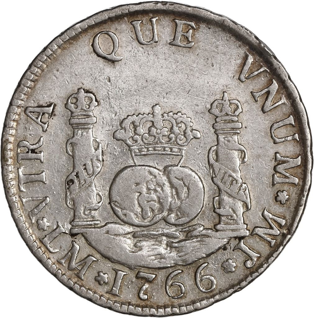 PERU, Lima, pillar 2 reales, Charles III, 1766/5 JM, extremely rare, ex-O'Brien.