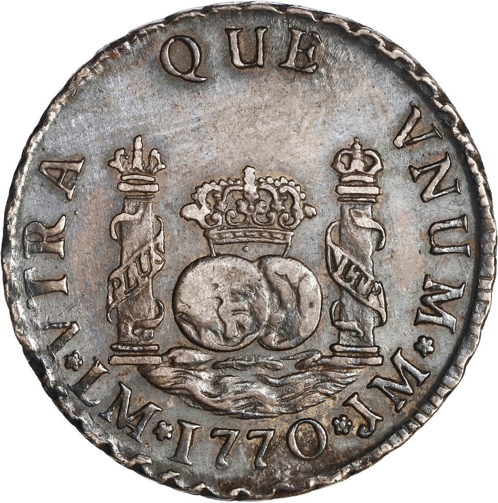 PERU, Lima, pillar 2 reales, Charles III, 1770 JM, ex-O'Brien.