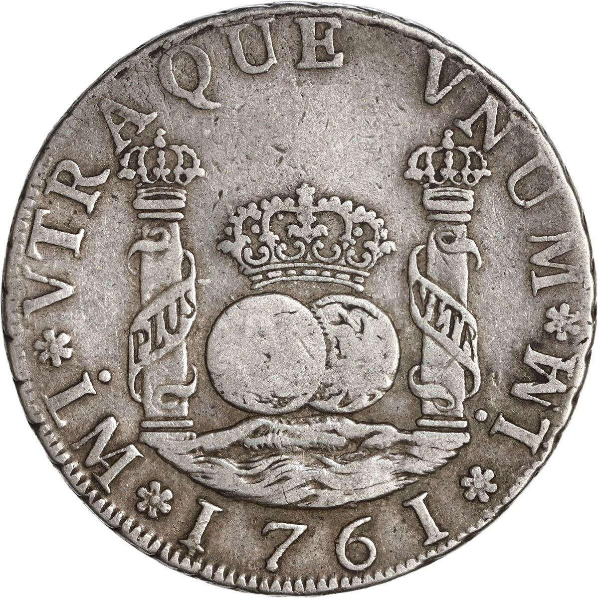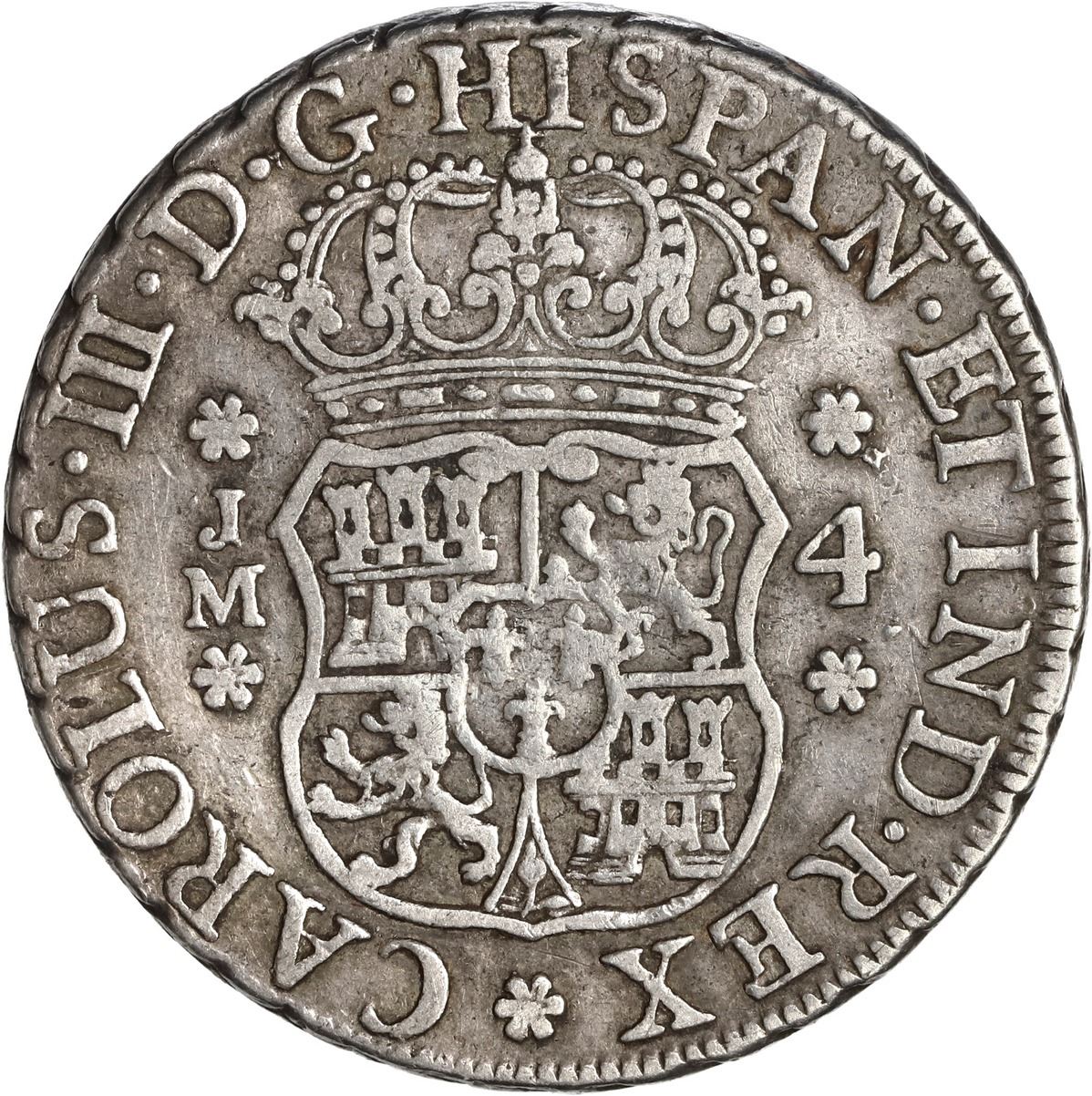 PERU, Lima, pillar 4 reales, Charles III, 1761 JM, rare, ex-O'Brien.
