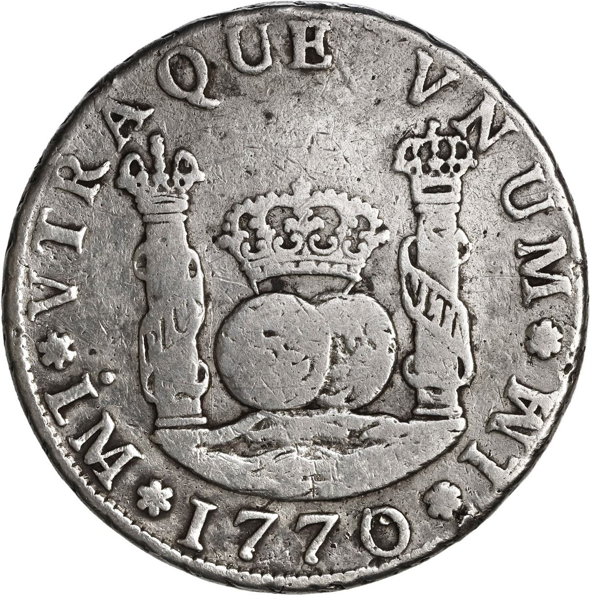 PERU, Lima, pillar 4 reales, Charles III, 1770 JM, rare, ex-O'Brien.