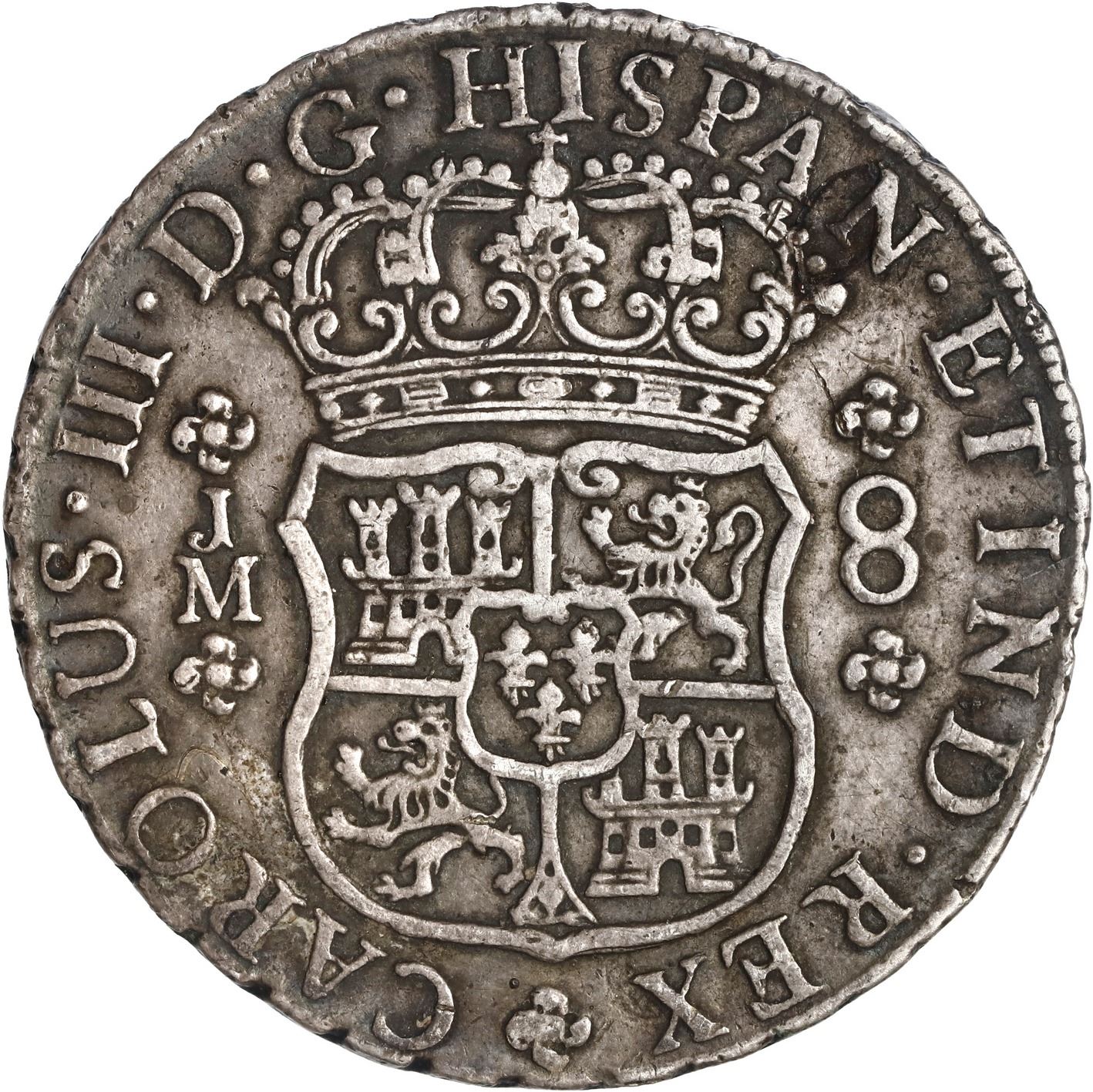 PERU, Lima, pillar 8 reales, Charles III, 1767 JM, no dot over right mintmark, ex-Brameld.
