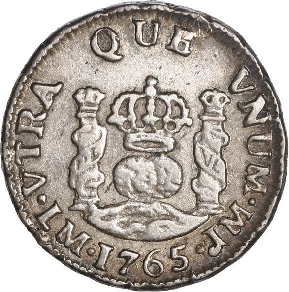 PERU, Lima, pillar ½ real, Charles III, 1765 JM, ex-O'Brien.