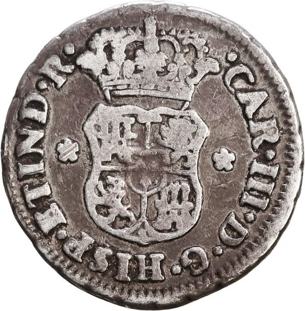 PERU, Lima, pillar ½ real, Charles III, 1768/7 JM, extremely rare, ex-O'Brien.