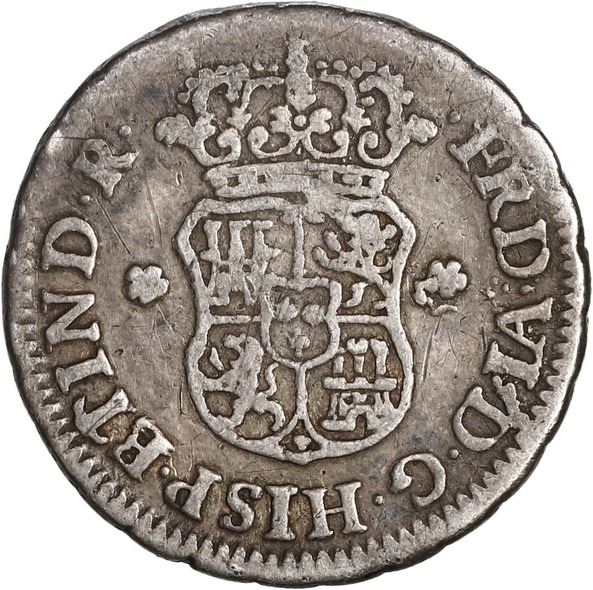 PERU, Lima, pillar ½ real, Ferdinand VI, 1754 JD, ex-O'Brien.