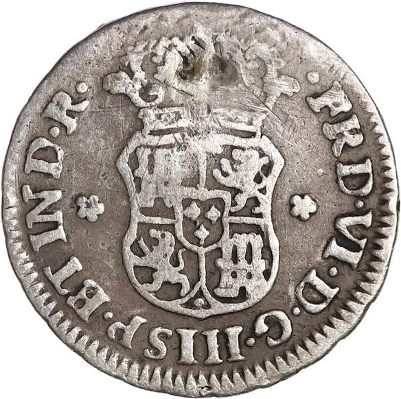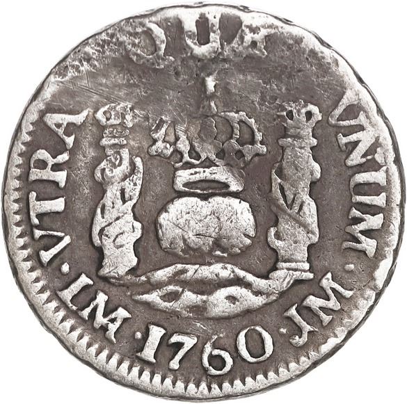 PERU, Lima, pillar ½ real, Ferdinand VI, 1760 JM, very rare, ex-O'Brien.