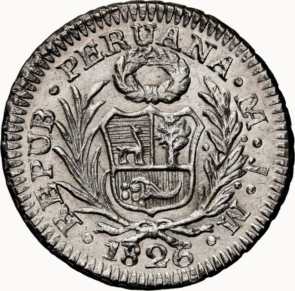 PERU, Lima, ½ real, 1826 JM, NGC MS 63, ex-O'Brien. KM-144.1. Blazingly lustrous and very sharply struck with full rims, first date of issue, second finest in NGC census behind a single MS 65. Pedigreed to the John O'Brien Collection (stated on label), with his tag.
